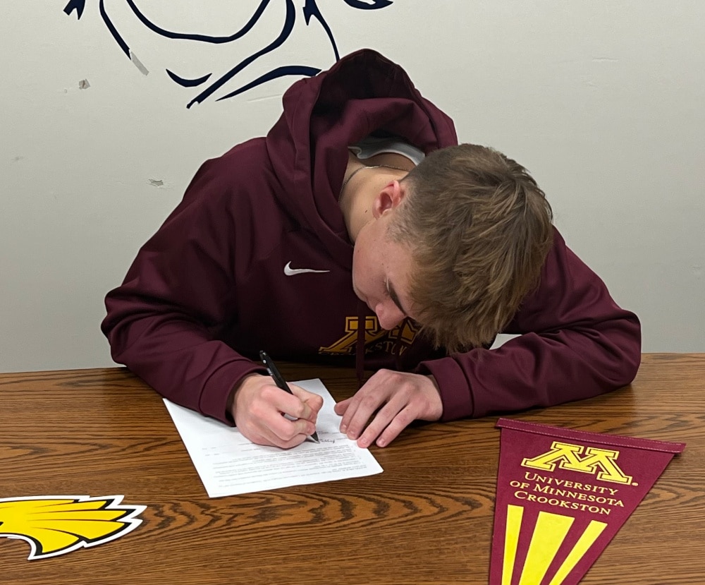 Crookston High School senior Reggie Winjum signed a National Letter of Intent to play basketball at the University of Minnesota Crookston next year.